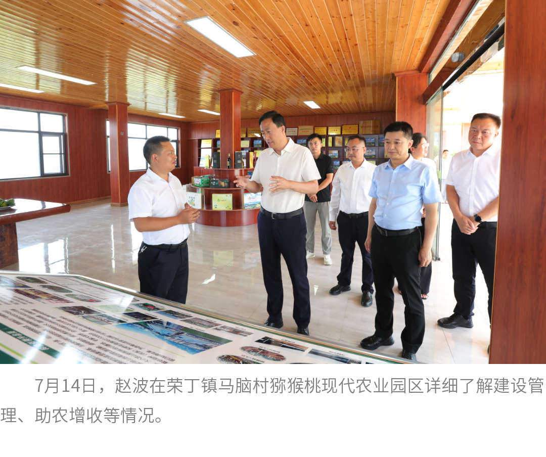 荣丁镇马脑村猕猴桃现代农业园区是省三星级现代农业园区,规划打造集种植、加工、观光于一体的农旅融合示范点。赵波来到园区,详细了解建设管理、助农增收等情况,并向当地党员干部群众宣讲省委十二届七次全会精神。他指出,这次省委全会对“推进文化和旅游深度融合发展、做大做强文化旅游业”进行重点研究并作出决定,事关全局、意义重大。我们要深入领会、准确把握省委全会精神,依托乐山丰富的文旅资源,“以文塑旅”培育高品质旅游产品、“以旅彰文”打造优秀文化传播载体,推动特色产业发展提质增效,着力巩固拓展脱贫攻坚成果,推进乡村全面振兴,更好增进民生福祉、助推经济社会高质量发展。