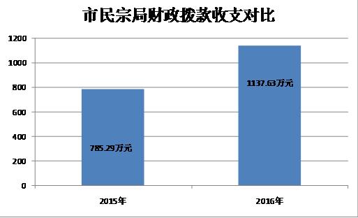 市民宗局2016年度财政拨款收支总决算1137.63万元。与2015年相比,财政拨款收、支总计各增加352.34万元,增长45%。