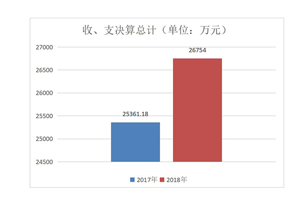 2018年度收、支总计26754万元。与2017年相比,收、支总计各增加1392.82万元,增长5.49%。主要变动原因是我委本年度建设项目增加,如:“夜游三江”提升工程,乐山大佛左侧(天洞-麻洞)危岩治理工程,乐山大佛胸腹部开裂残损区域抢救性保护前期研究及勘测项目等。