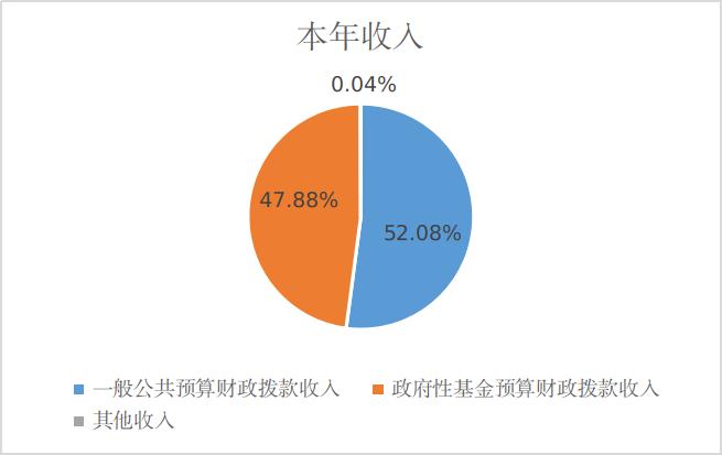 2020年本年收入合计20885.8万元,其中:一般公共预算财政拨款收入10876.33万元,占52.08%;政府性基金预算财政拨款收入10000万元,占47.88%;上级补助收入0万元,占0%;事业收入0万元,占0%;经营收入0万元,占0%;附属单位上缴收入0万元,占0%;其他收入9.47万元,占0.04%。
